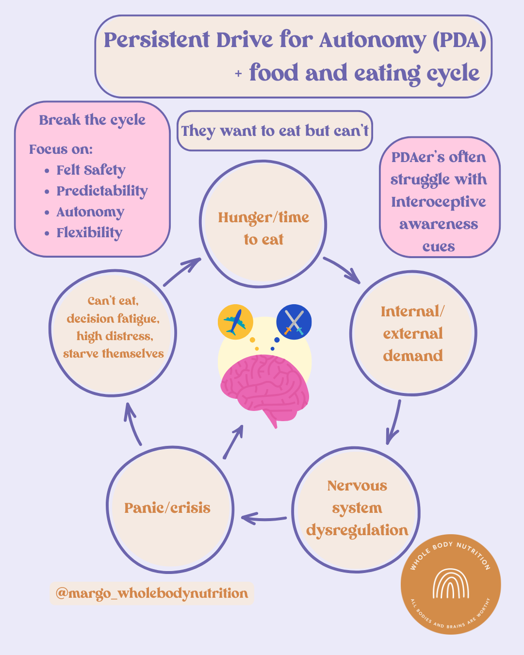 Interoception can greatly impact eating for PDA individuals. It can impact appetite, hunger, thirst and feelings of fullness.